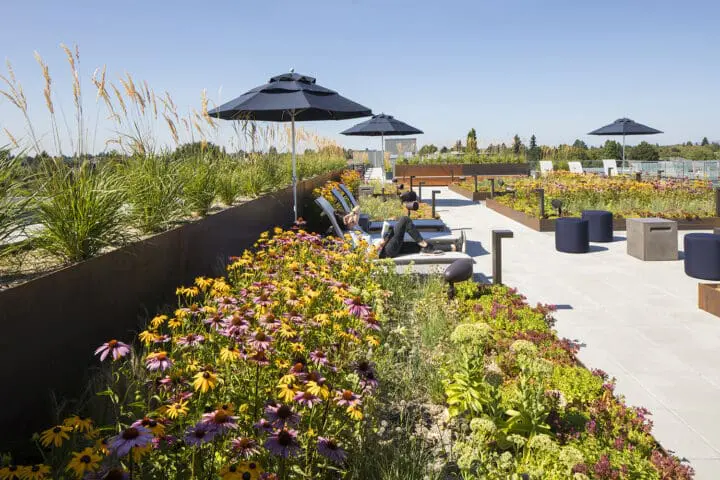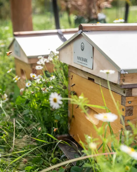 Sustainability is at the heart of the Ninebark ethos. The all-electric community design minimizes its environmental footprint. Ninebark features 72 electric vehicle charging stations and rooftop solar panels on the Riverside Retreat that generate 100% of its energy needs. The property has over 6,300 square feet of open vegetated pollinator garden spaces and two beekeeper-managed beehives on-site to support regional biodiversity and nature-connected resident engagement opportunities. Ninebark boasts certifications, including Salmon-Safe, Fitwel, ILFI Net Zero Energy, and the National Wildlife Federation’s Garden for Wildlife, that collectively reflect the development’s commitment to environmentally friendly practices and dedication to reducing its carbon footprint.