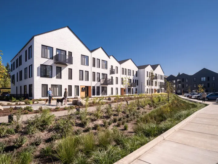 A new residential waterfront community, Ninebark weaves together eight residential buildings, a clubhouse, and a variety of outdoor spaces on nearly nine acres along the Columbia River in Southwest Washington.