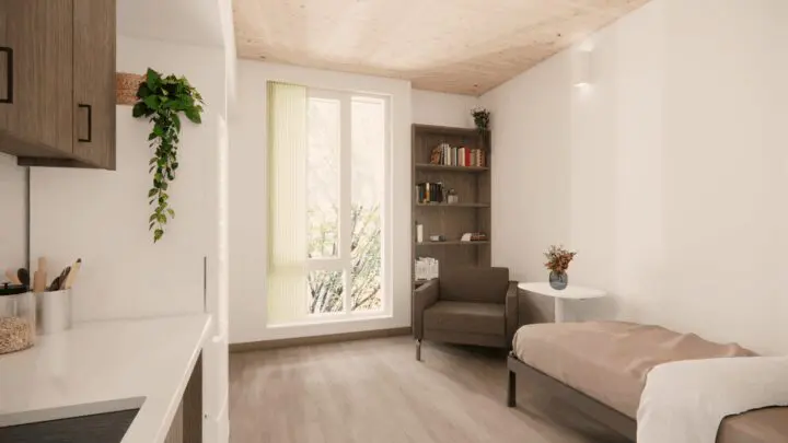 “This project is a great example of how to economically build high-performing, desirable housing for people who desperately need it,” said Christopher Pitt, Associate Engineer at KPFF. “It shows we can build taller with timber by leveraging the benefits of schedule savings, biophilic design, and a reduced carbon footprint while addressing fire resistance and budget considerations.” (source: WoodWorks Case Study: Julia West House)