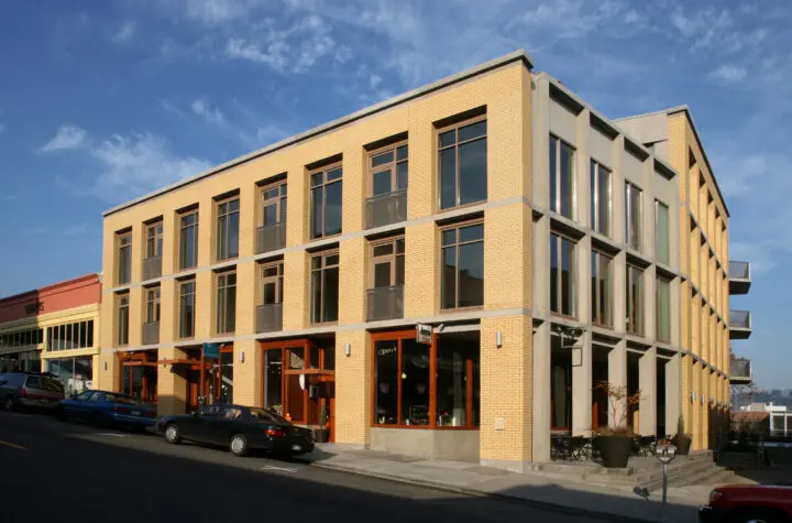 Located in downtown Hood River, Oregon, 310 Oak Street Condos is a four-story mixed-use building that is modern in detail, scale, and function, nestled favorably within a historical context.