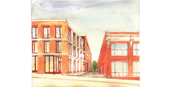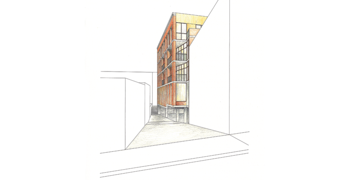 Architecturally, 310 Oak Street Condos takes cues from its historic context and integrates them with contemporary design. Traditional materials of brick and wood complement the modern expression of the concrete structure, as the building mass steps back to form an adjacent outdoor plaza.