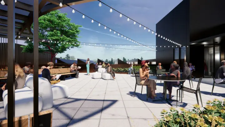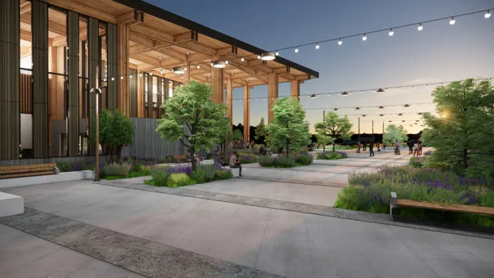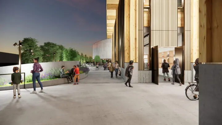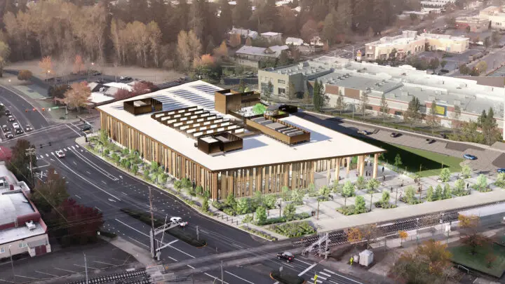 East County Library will be an exciting new library as part of the Multnomah County Library system, providing exciting new resources and programs within its 95,000 square feet. The building will be similar in size to the Central Library located in downtown Portland but in a location that is easily accessible for all East County residents. The project is transforming an underutilized parking lot on the corner of NW Division Street and NW Eastman Parkway into a new space for learning, gathering, and connection. The mass timber building’s landmark design blends into the natural landscape and patterns of the Pacific Northwest, creating a thoughtful beacon that will serve community members for future generations. The Civic Hub on the north edge of the site will be a new space for events and markets, complementing Gresham City Hall and Plaza, which sit across the light rail tracks. A linear, tree-filled pedestrian pathway will link the Civic Hub and TriMet’s MAX Light Rail Service to a terraced entry plaza on Division and TriMet’s FX Bus Line.