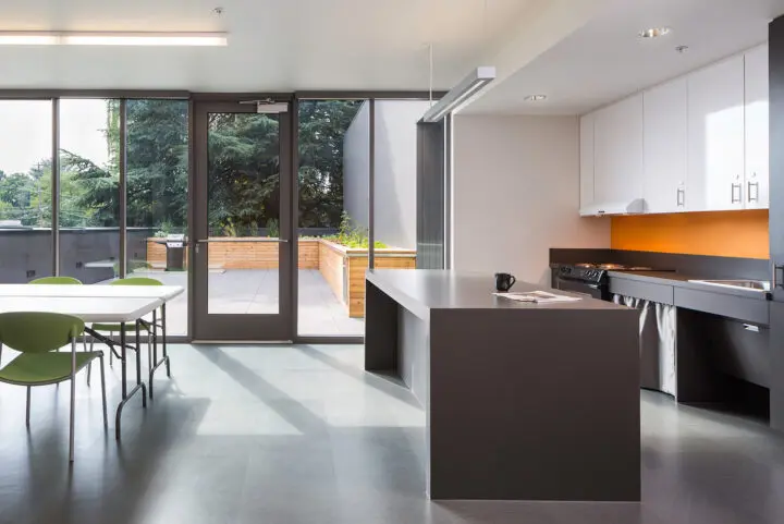 The ground-level commercial space is home to the headquarters of Ride Connection, a nonprofit that provides transportation options for older people and people with disabilities.