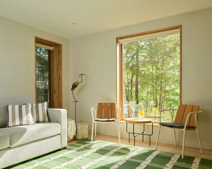 While the project did not pursue any sustainability certifications, integrating sustainable design principles was of the utmost importance. The renovation improved the building envelope, which is now exceptionally well insulated and runs almost 100% on electricity. Any additions were made within the cabin’s existing footprint, minimizing its impact on the surrounding environment.
