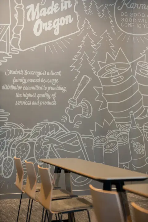 Maletis Beverage is a family-owned beverage distribution business that has been working in its space on Swan Island since 1993. Outdated, disjointed, and cramped, the company wanted the renovation to better reflect its leadership in the local industry and continued growth.