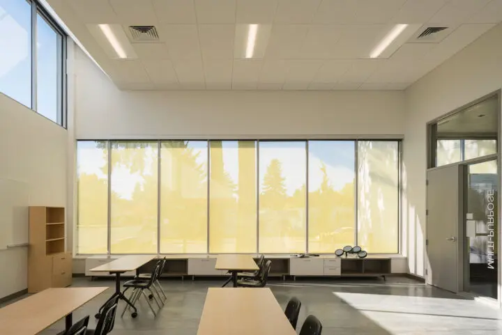 The Club’s sustainable features include a courtyard, skylights, and clerestory windows that bring light to the interior spaces, an ultra-efficient building envelope, regionally sourced building materials, VOC-free interior finishes, right-sized mechanical systems, native landscaping, and preservation of existing old growth trees on the site.