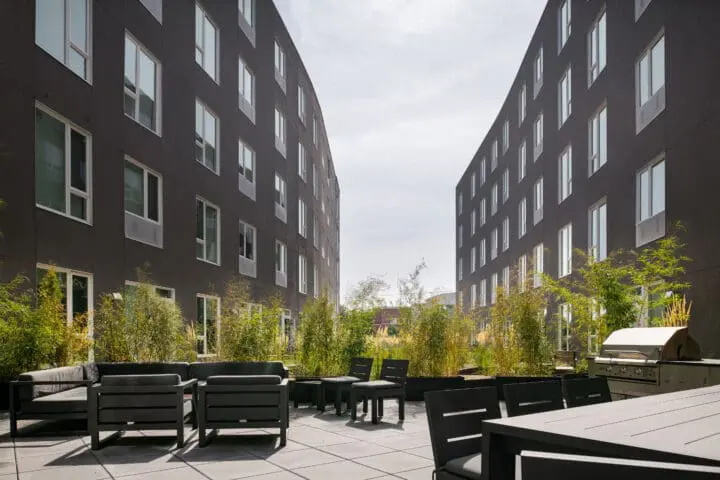 The Fowler fosters community with its upscale amenities. The outdoor deck/courtyard features lush plantings, barbeques, fire pits, and flexible seating, making it the perfect place to watch the sunset. Additional amenities include a luxury fitness center, a community room with a full kitchen, and a community working space.